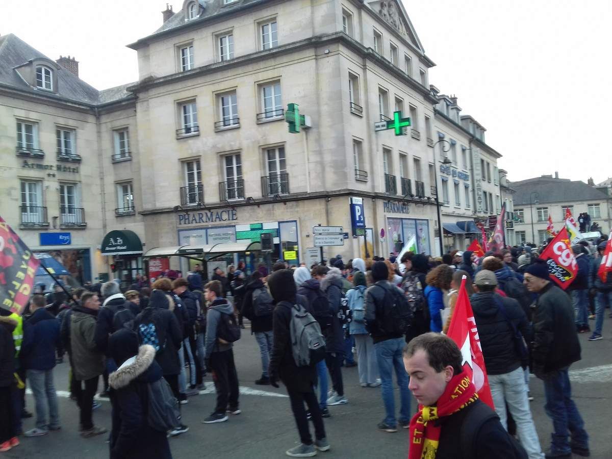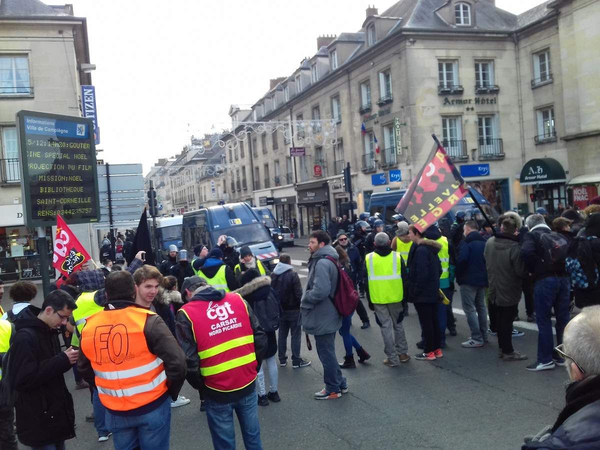 C'est prés de mille manifestants dans les rues de Compiègne ce matin, lycéens, gilets jaunes, gilets rouges et sans gilets, retraités, les syndicats cgt, fo, fsu, la convergence des luttes.